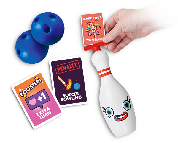 Gutterball is the family bowling game gone goofy. Think classic bowling with a twist -- you must knock down all the white pins to win! Watch out for the red penalty pins, hit those down, and face the consequences. As you bowl, pick up the challenge cards on the pins left standing. The first team to collect 8 cards must face their challenges!