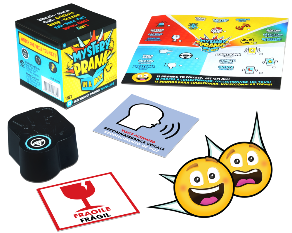 Release your inner prankster with Mystery Prank In A Box from WowWee! Inside is a surprise sound prank that is activated by one of 5 sensors; light, darkness, motion, timer or touch.