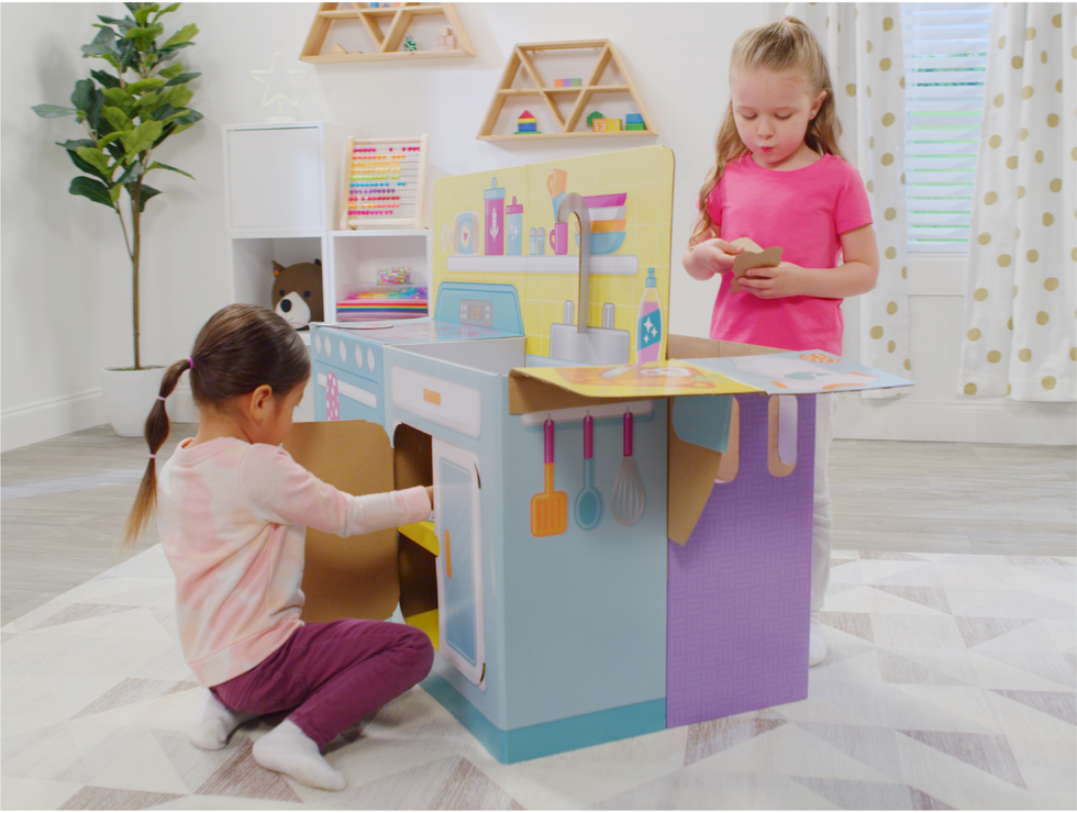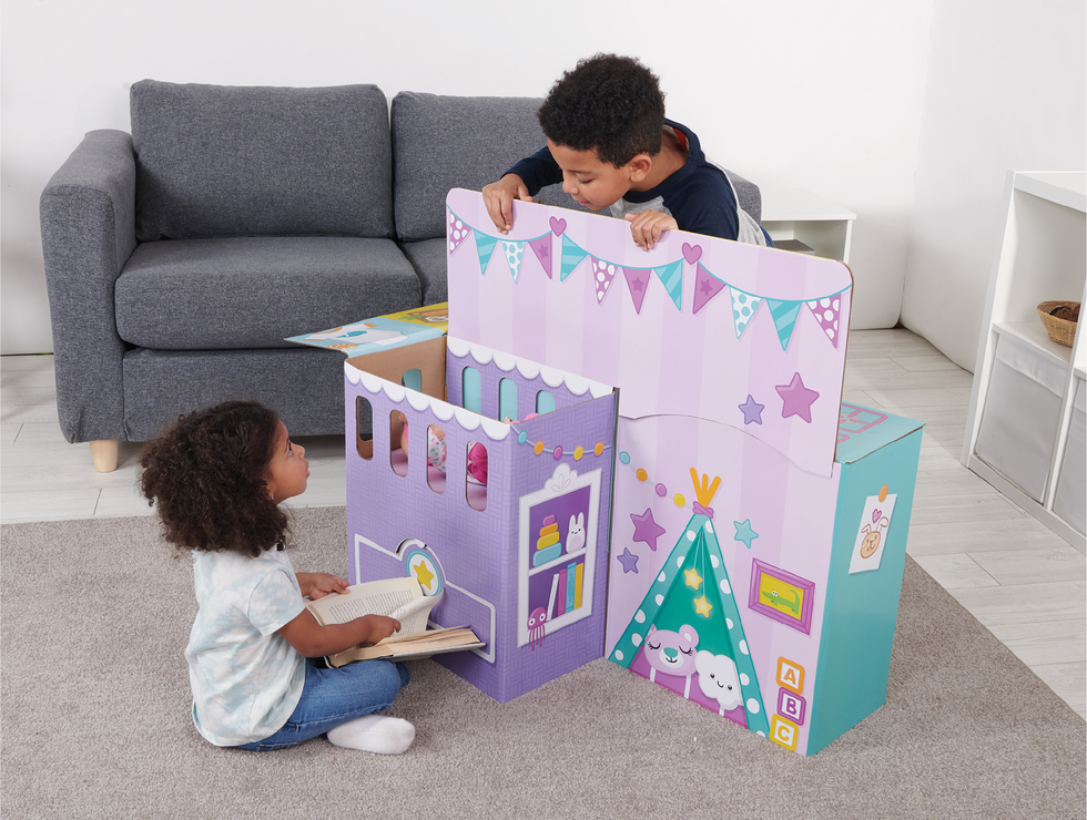 Made for kids with parents in mind! These storable, adorable, pop-up playsets can be assembled in under 5 minutes and fold flat for easy storage! Pop2Play is made from durable eco-friendly StrongFold™ cardboard that can hold up to 50 lbs.